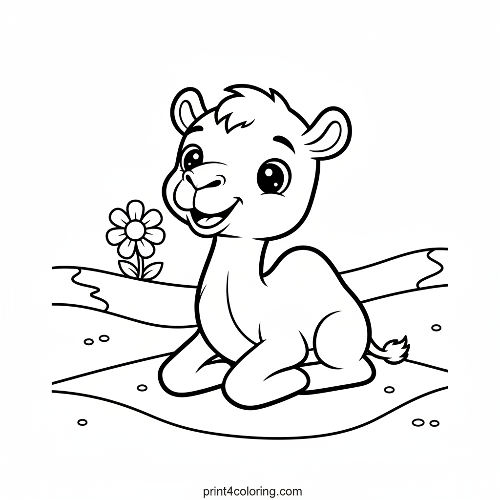 #baby camel#camel#desert#animal#cute#flower#sand#smiling#coloring-page#printable