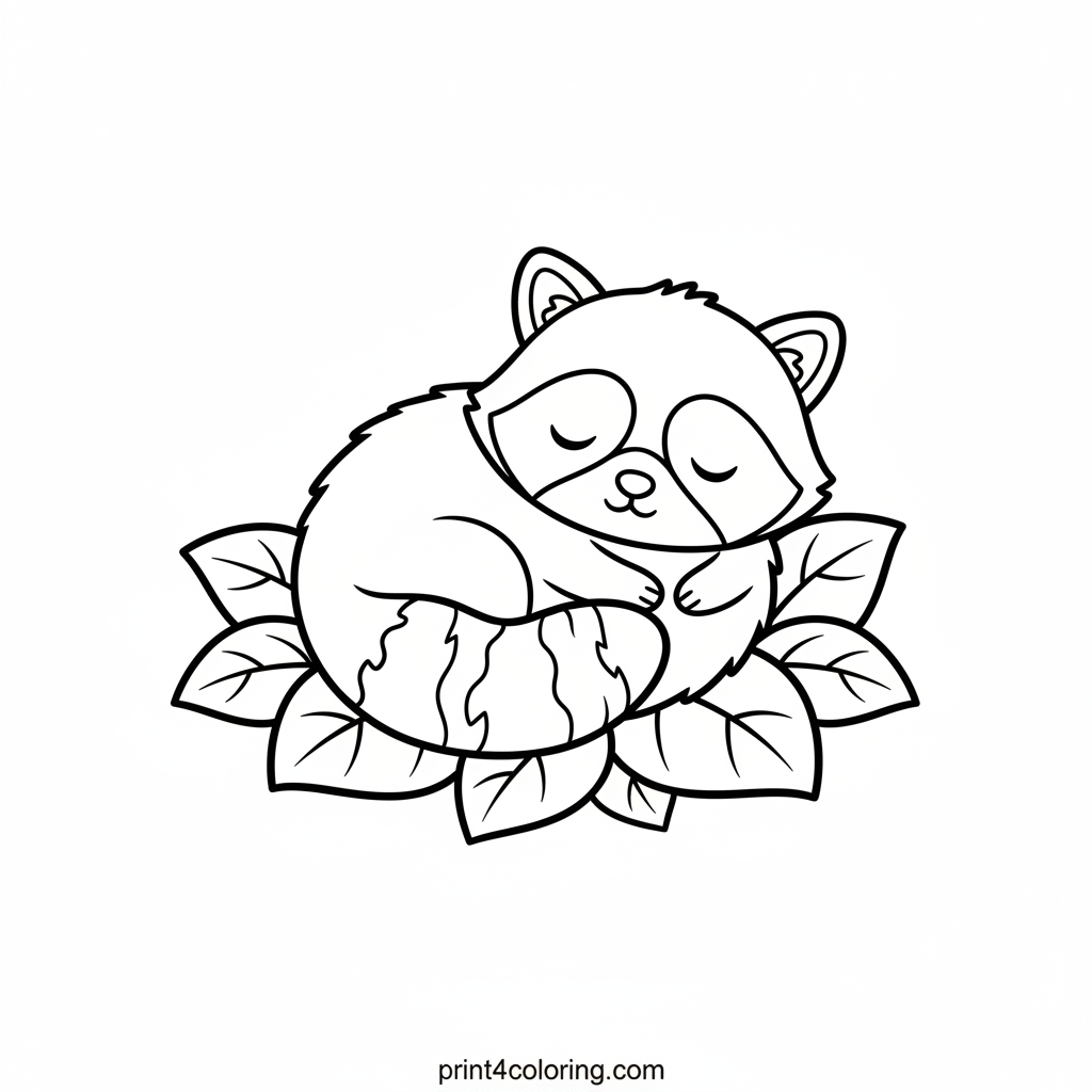 #raccoon#baby-animal#sleepy#forest#leaves#cute#coloring-page#printable