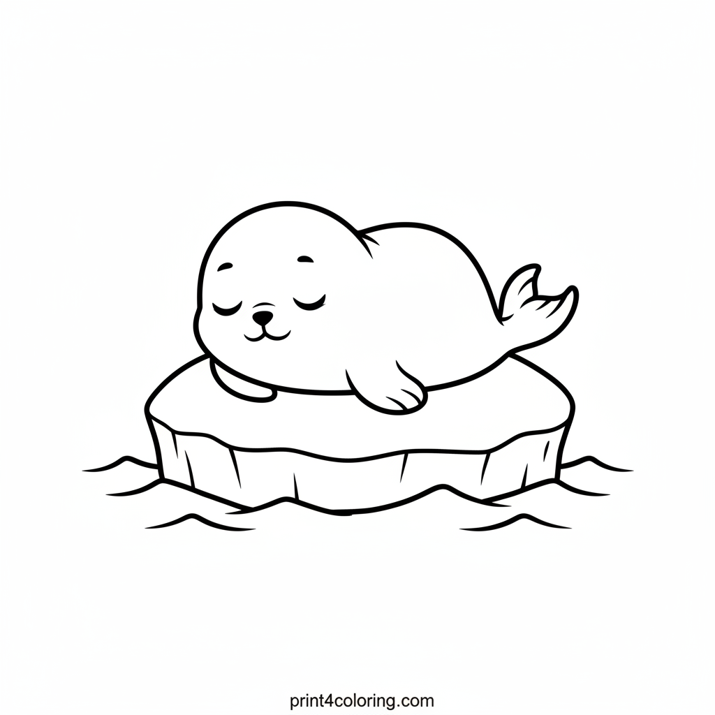 Dive into a peaceful arctic scene with this adorable baby seal pup! With big, friendly eyes closed, it's enjoying a super cute nap on a smooth, rounded iceberg. Gentle waves softly rock around it, creating a serene moment. Grab your crayons and bring this cozy polar dream to life with your favorite colors!