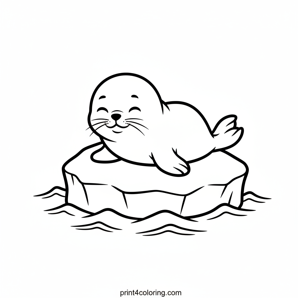 Drift into a peaceful scene with this adorable baby seal pup! With big, friendly eyes closed, it's enjoying a cozy nap on a smooth, rounded iceberg. Gentle, rolling waves surround our sleepy friend, making for a serene Arctic moment. Perfect for little artists to bring to life with calm, cool colors!