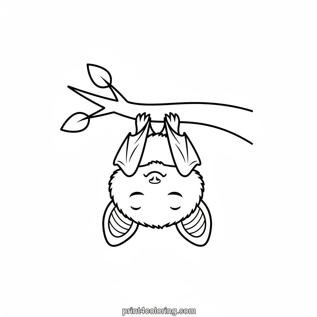 Discover this super cute and fluffy baby bat, fast asleep while hanging upside down from a tree branch. With big, soft ears and a tiny, happy smile, it's having the sweetest dreams! Bring this peaceful scene to life with your favorite colors. A perfect, relaxing coloring adventure.