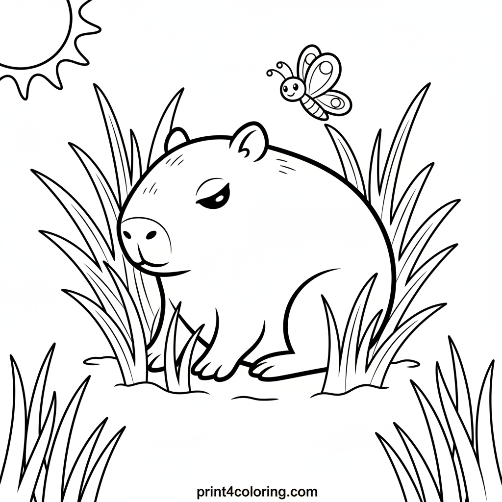 Snuggle up with this adorable baby capybara enjoying its very first nap! With big, gentle eyes, this little one is peacefully nestled in soft, tall grass. A friendly butterfly rests gently nearby, sharing the quiet moment. Grab your colors and bring this sweet, sleepy scene to life!