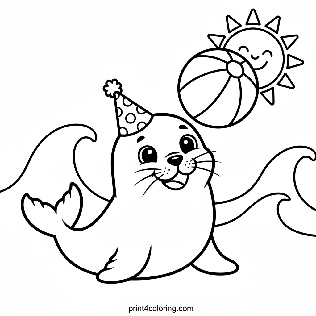 The Happy Seal's Beach Ball Balance Coloring Page