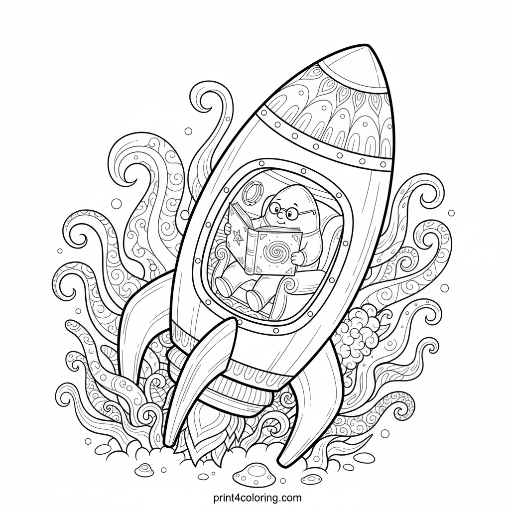 #rocket#space#alien planet#reading#adventure#whimsical#sci-fi#coloring-page#printable