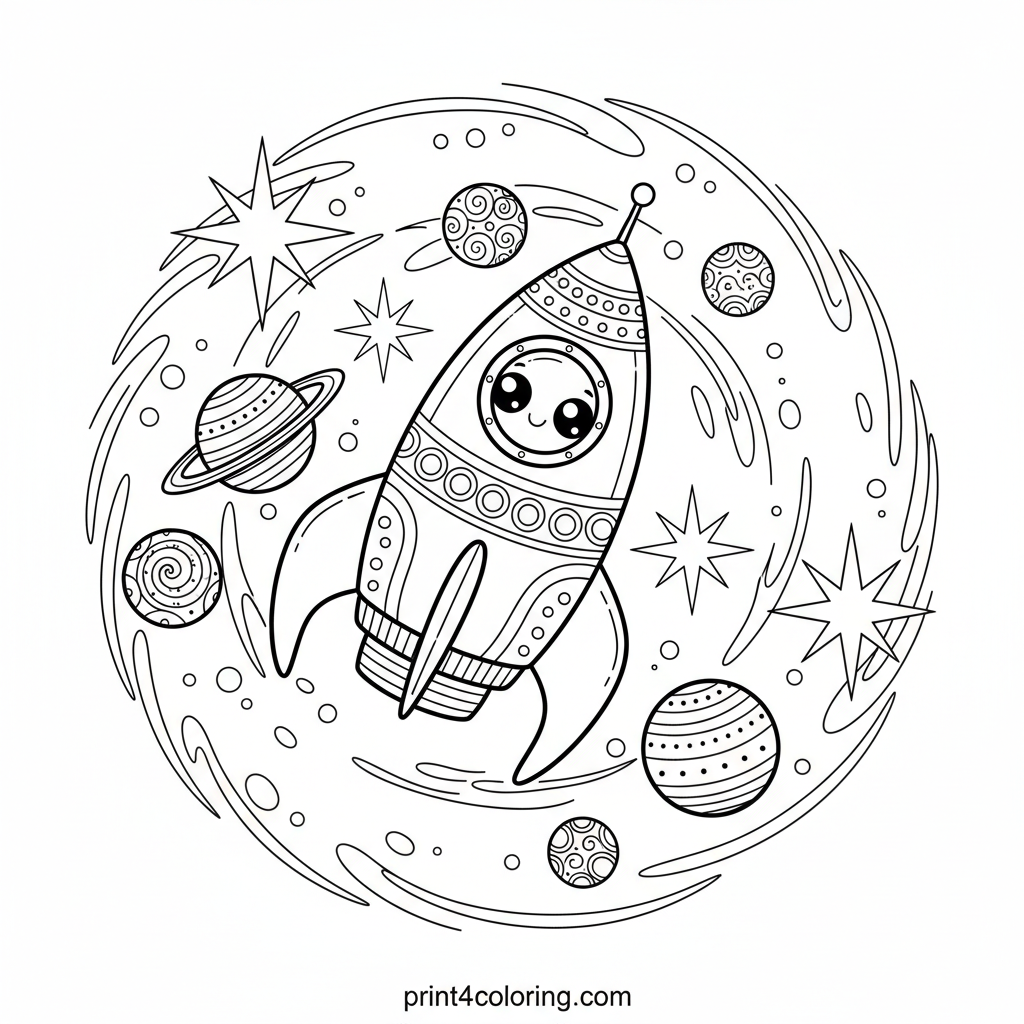 The Whimsical Rocket's Cosmic Dance Coloring Page