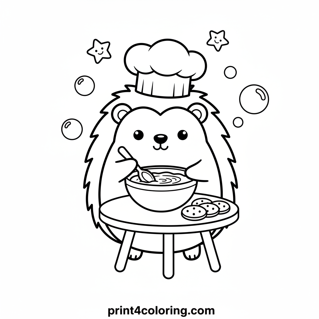 Tiny Chef Hedgehog's Cookie Creation Coloring Page