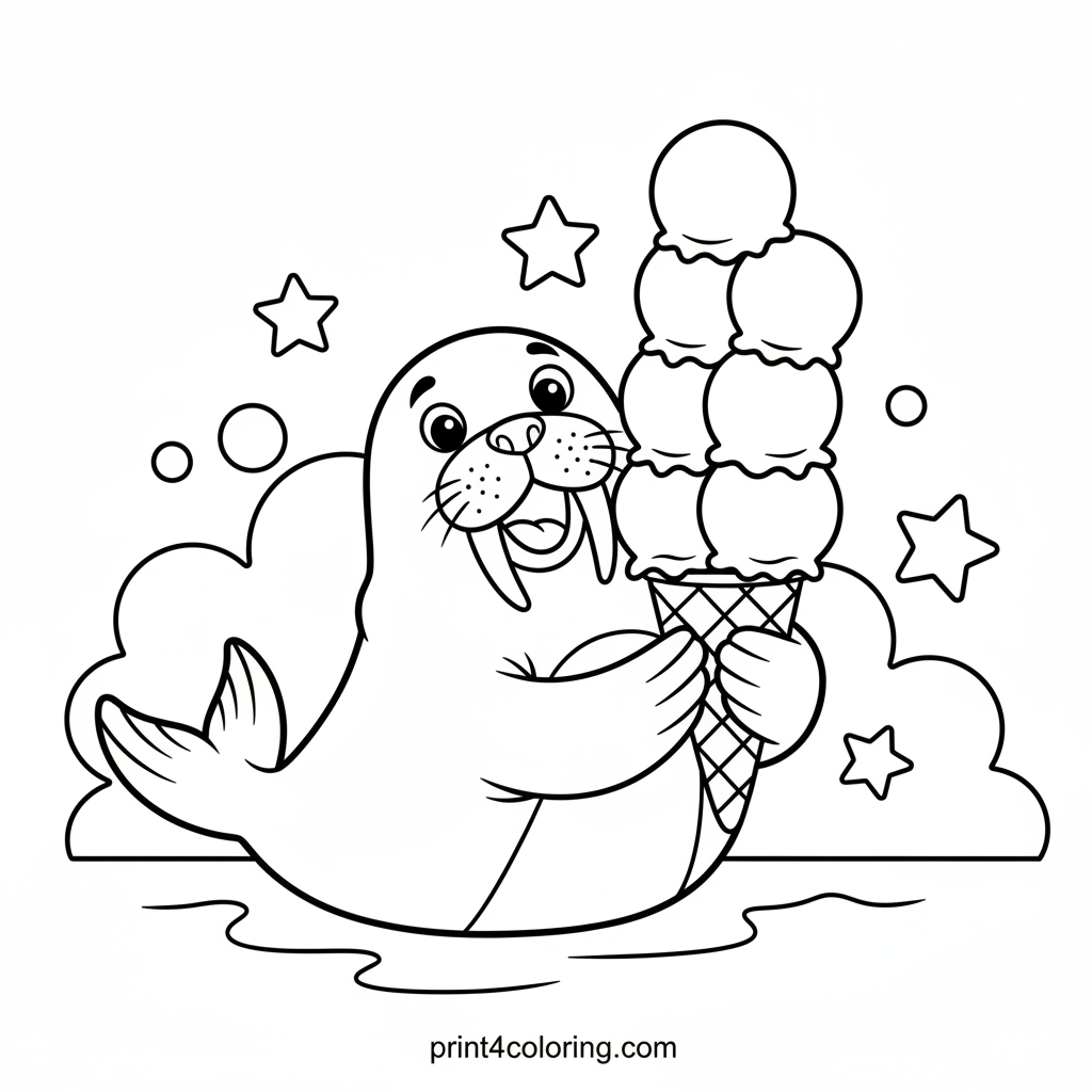 Walrus's Arctic Ice Cream Dream Coloring Page