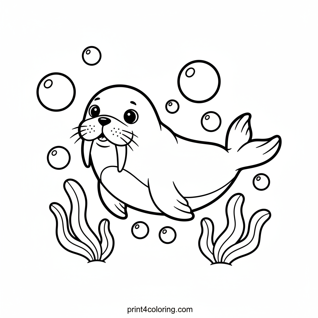 #walrus#ocean#underwater#bubbles#sea#fantasy#marine-life#easy#coloring-page#printable