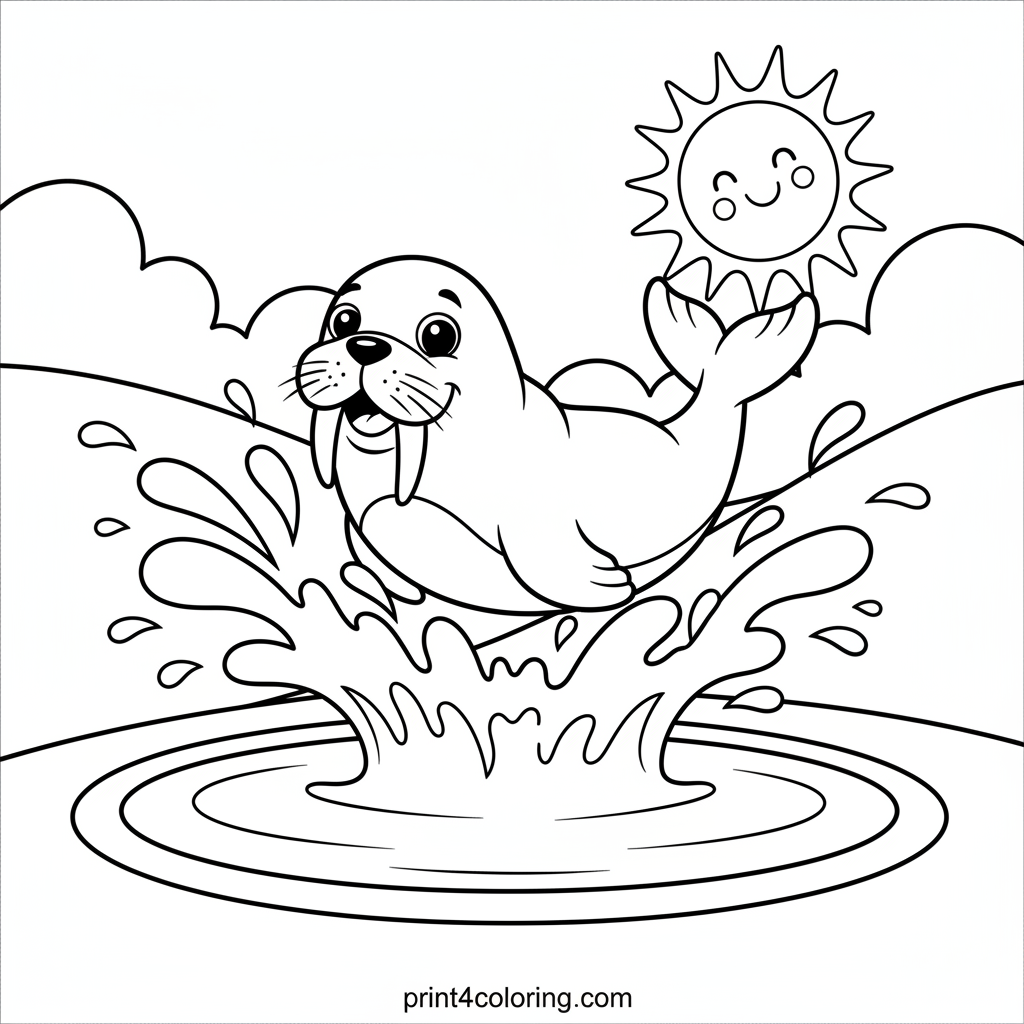 - 4🌈 Calm Pool - Color the water in the pool a serene blue or teal, maybe with some ripples to show the impact of the walrus's splash.