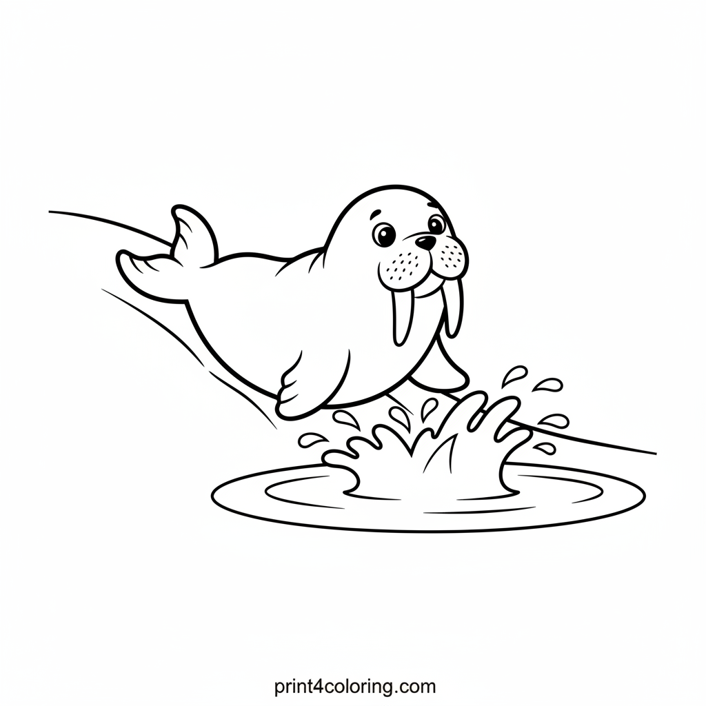 Dive into a frosty adventure with our happy walrus! Watch as it slides down a snowy hill, belly-first, heading for a big, joyful splash in a cool, blue pool. This playful scene is perfect for little artists to bring to life with their favorite colors, imagining the icy fun and chilly water.