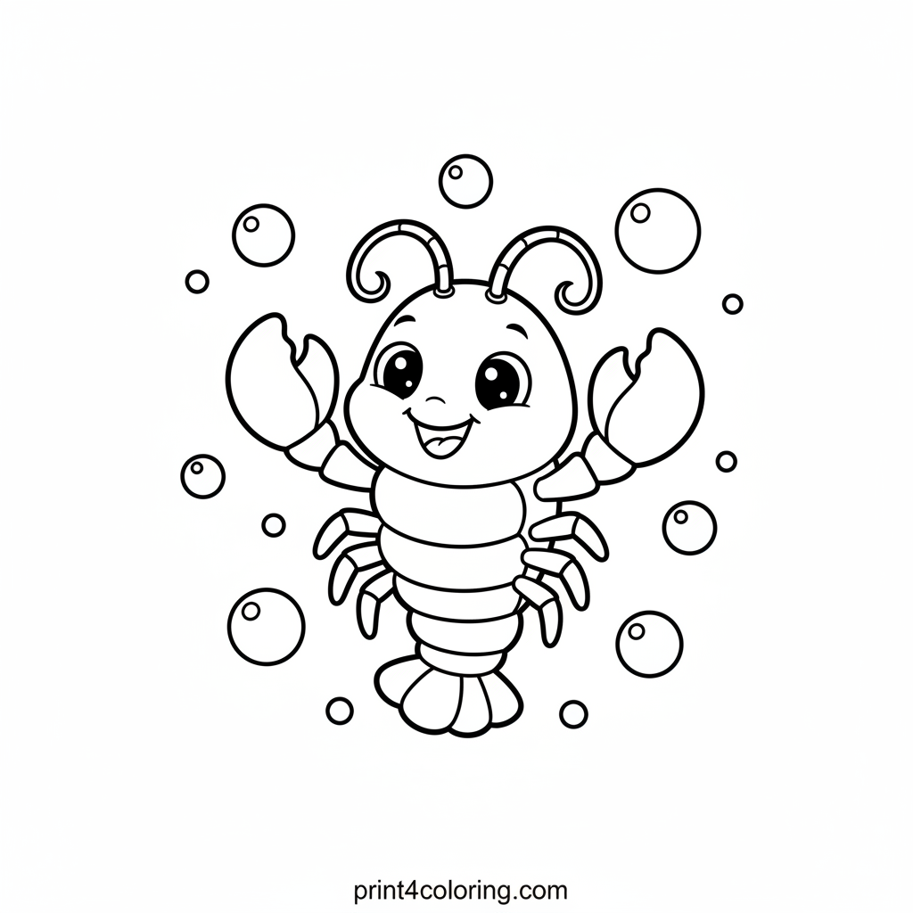 Dive into the ocean with this adorable baby lobster! With big, friendly eyes and a sweet smile, this little crustacean is waving hello just for you. Simple bubbles float around, waiting for your colorful touch. Get ready to bring this charming underwater scene to life with your favorite crayons and markers!