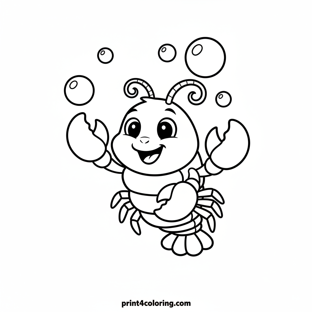 Dive into the ocean with this adorable baby lobster! With big, friendly eyes and a wide smile, this sweet sea friend is gently waving a claw to say hello. Simple bubbles float around, ready for your artistic touch. Grab your crayons and bring this charming underwater scene to life with your favorite colors!