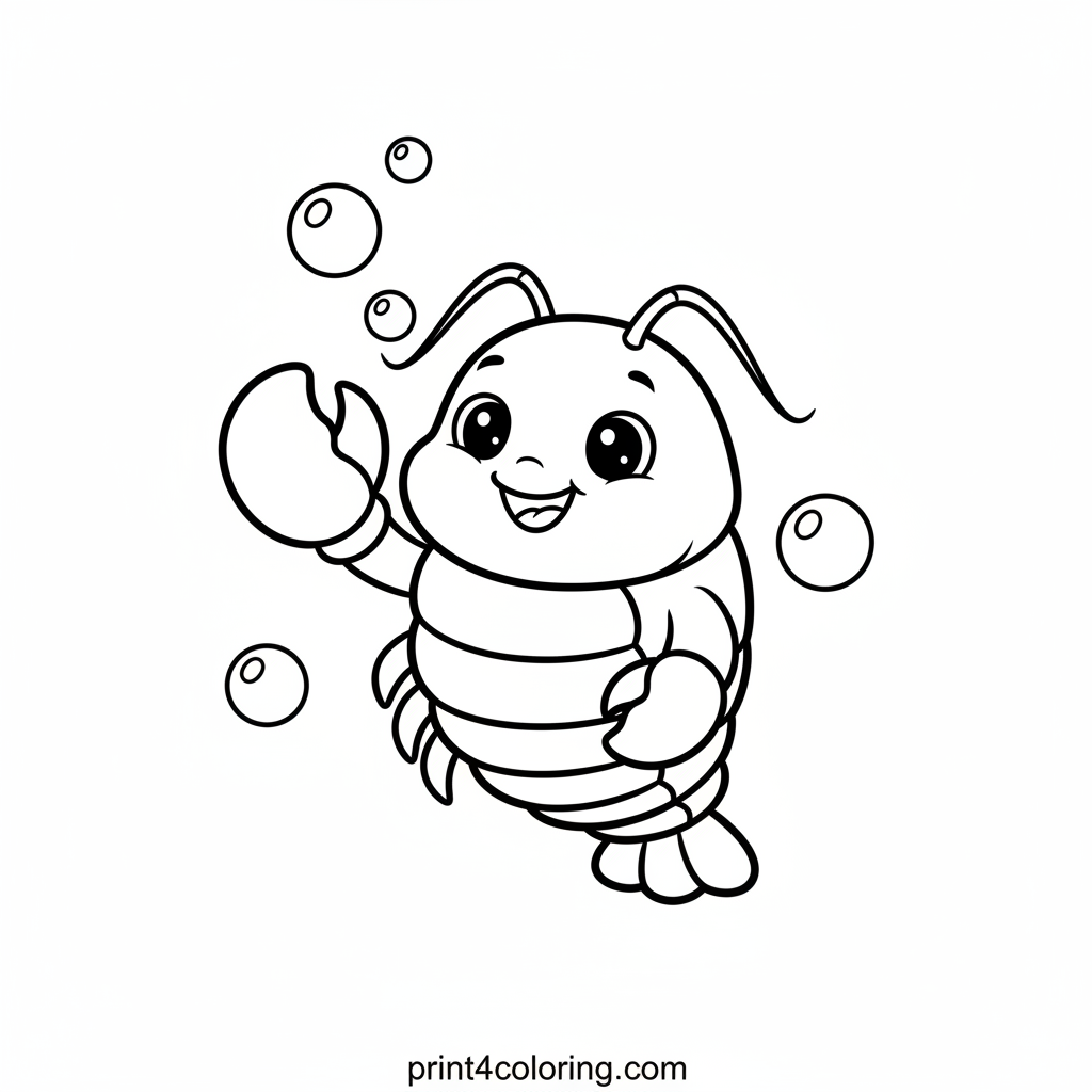 Dive into the ocean and meet our adorable baby lobster! With big, friendly eyes and a happy smile, this sweet little crustacean is gently waving hello with its claw. Simple, playful bubbles float around, inviting you to add vibrant colors to its underwater world. Perfect for young artists!