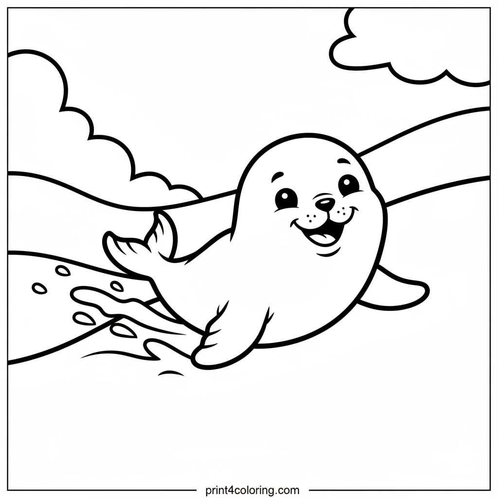 Get ready for some frosty fun with this playful seal! Watch as it gleefully slides down a gentle, snowy slope, leaving a wavy trail in its wake. Its flippers are spread wide for balance as it enjoys a super slippery adventure. Grab your crayons and add vibrant colors to this happy winter scene!