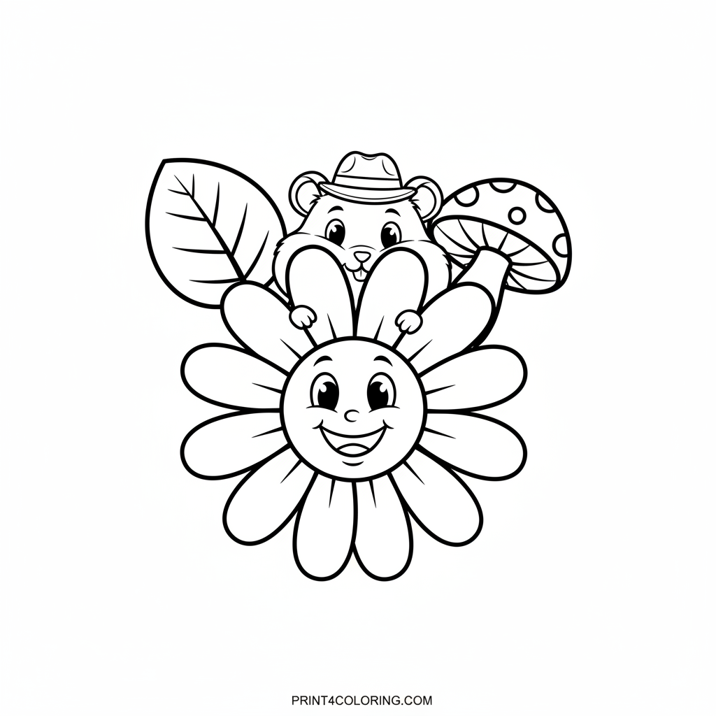 #hamster#garden#daisy#cute-animal#explorer#whimsical#coloring-page#printable