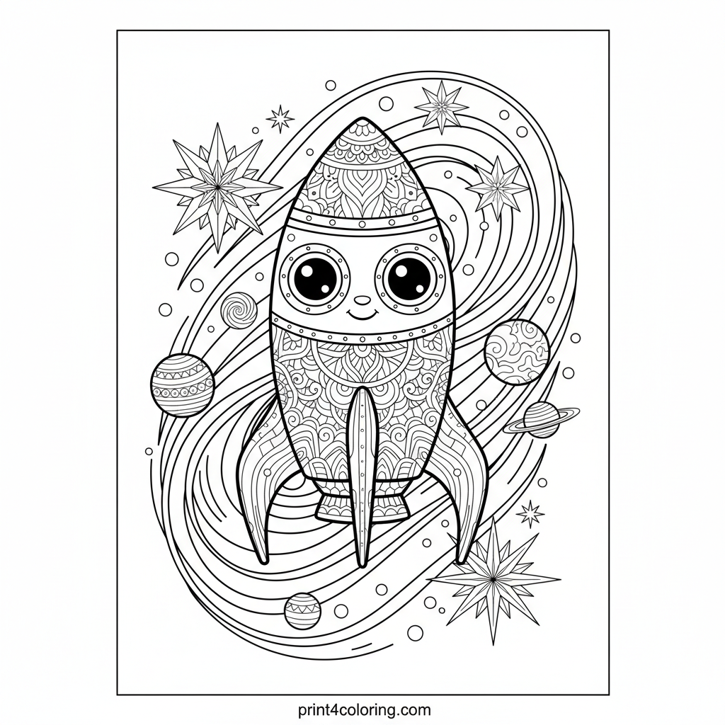 Whimsical Rocket's Cosmic Dream Coloring Page