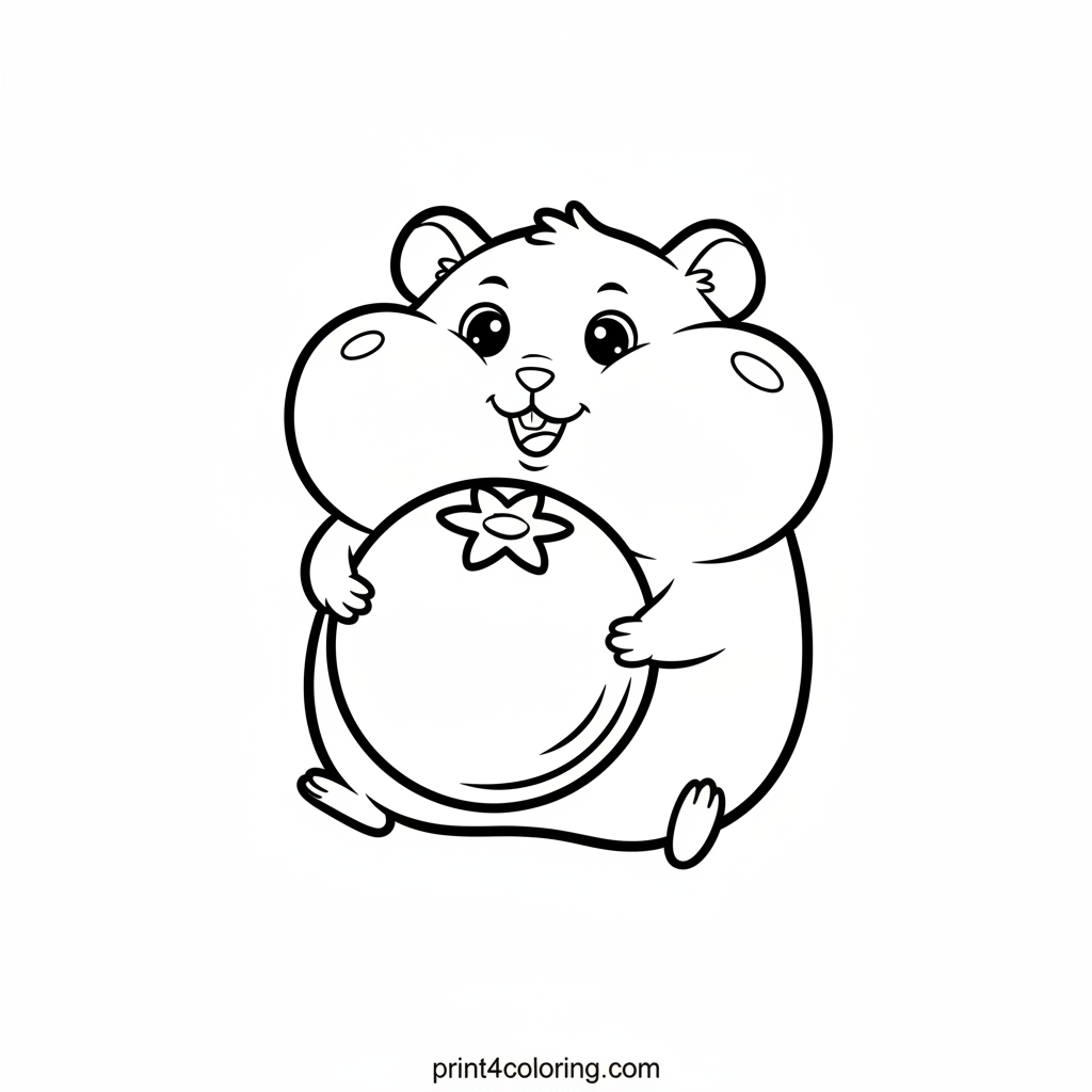 Meet a super cute, round hamster with hilariously puffed-out cheeks, on a big adventure! This little guy is trying to carry an enormous, juicy blueberry that's almost bigger than he is. Watch him wobble with delight as he tries to get his delicious treasure home. A heartwarming and funny scene perfect for coloring!