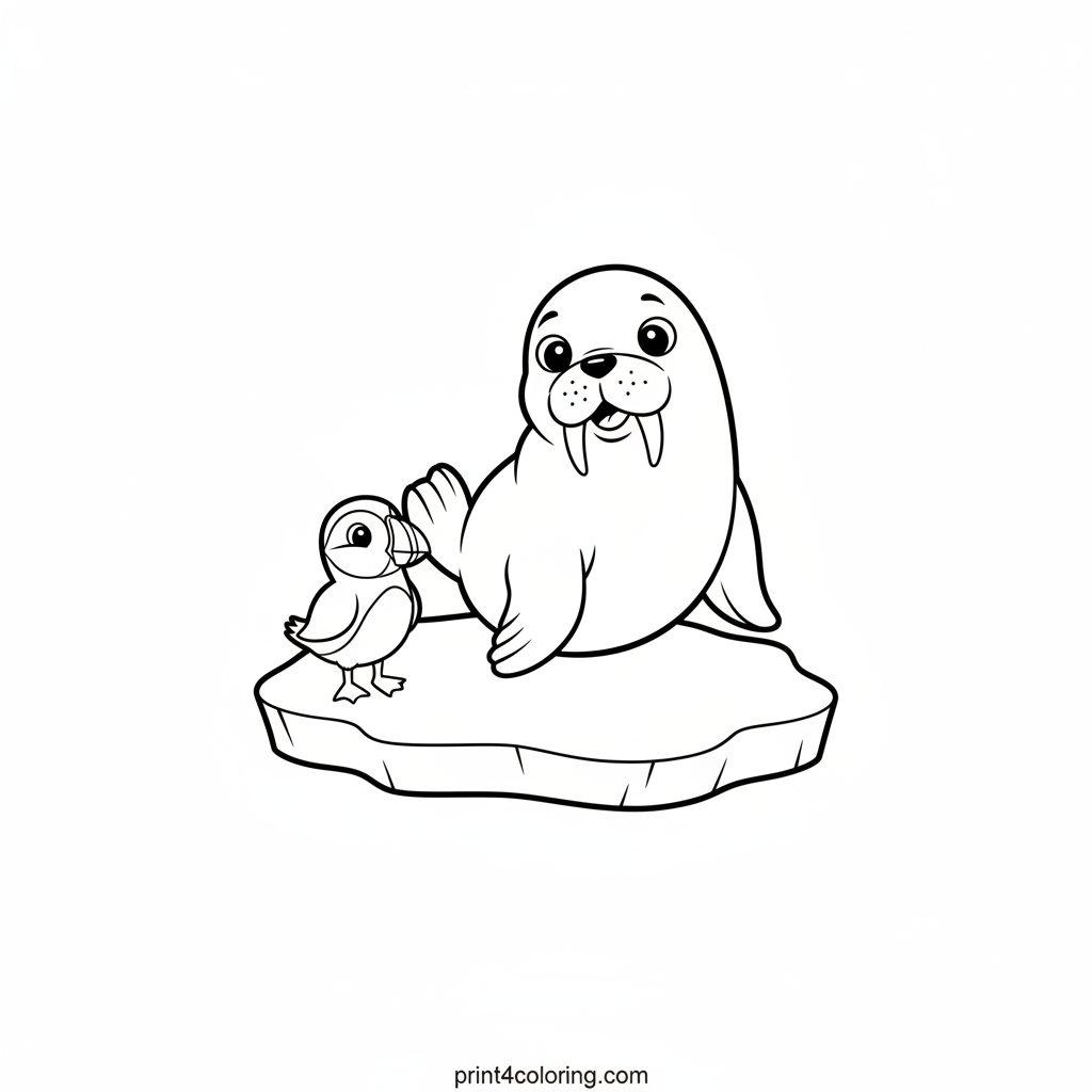 Wobbly Walrus & Puffin Playdate Coloring Page