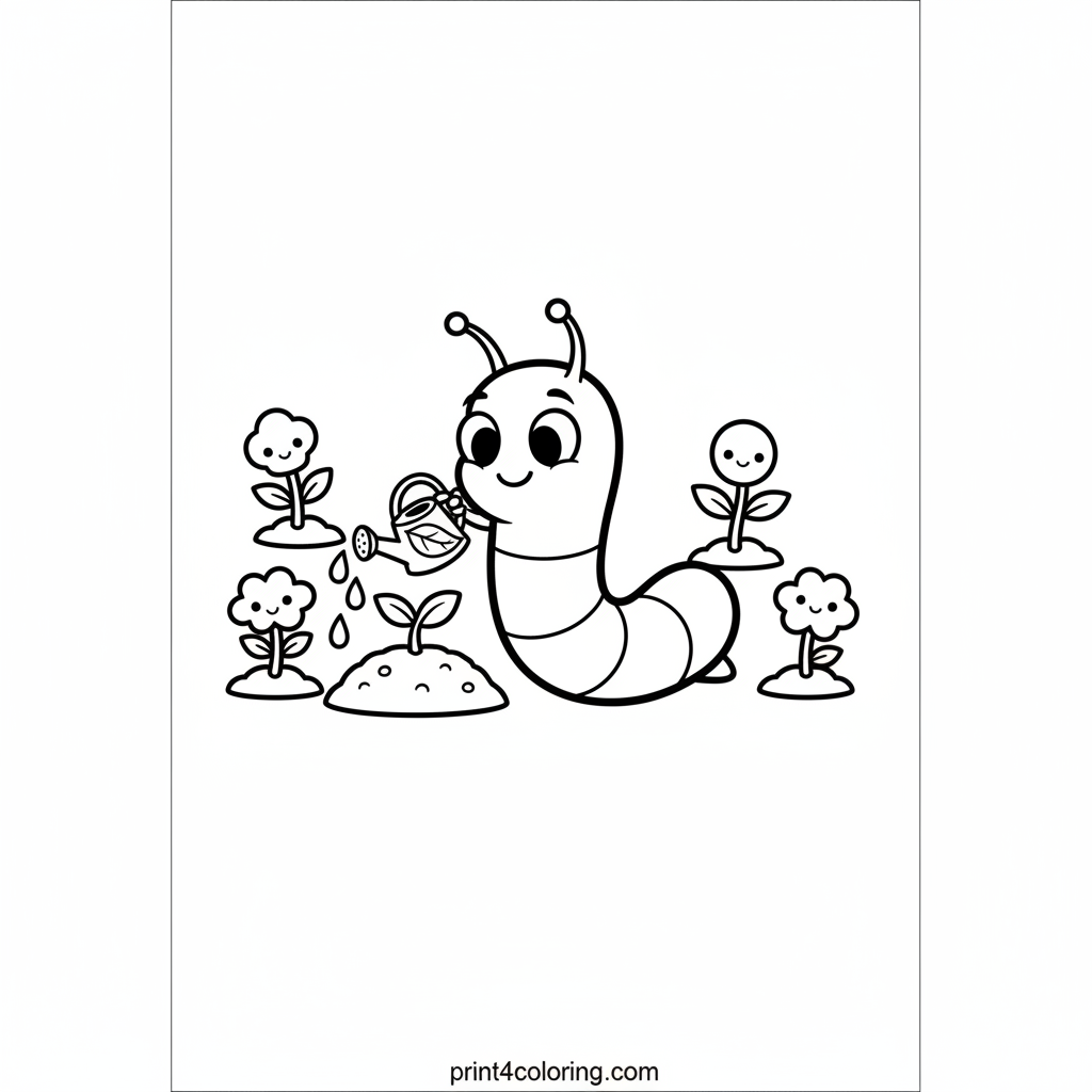 Wormy the Gardener: Helping a Tiny Sprout Coloring Page