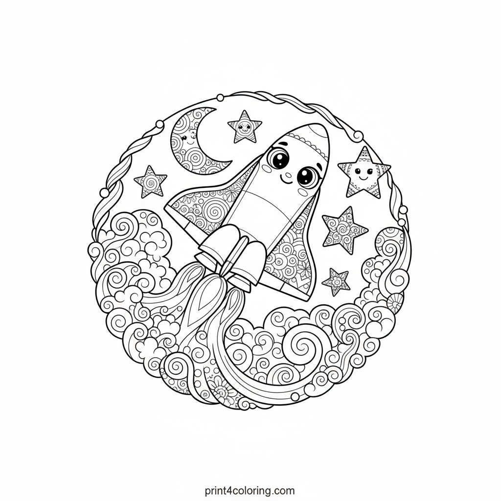 Zentangle Rocket's Cosmic Ascent Coloring Page
