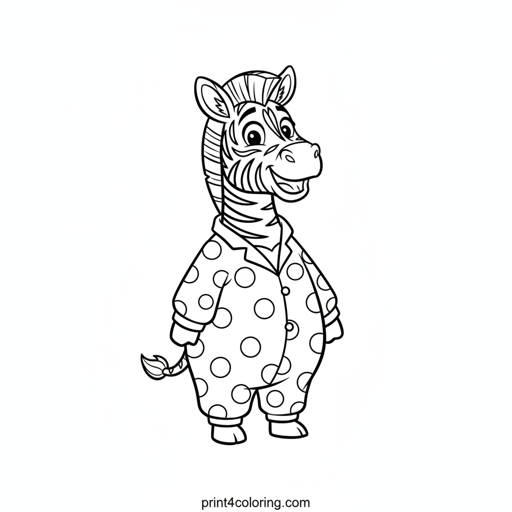 #zebra#silly#stripes#pajamas#funny-animal#cartoon#whimsical#coloring-page#printable