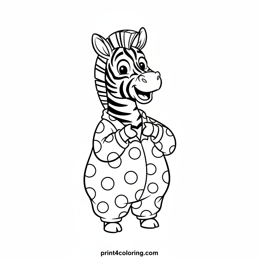 #zebra#animal#silly#stripes#squiggles#pajamas#polka-dot#funny#cartoon#playful#coloring-page#printable