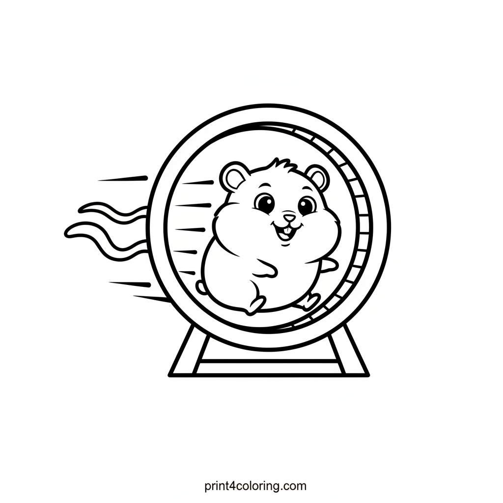 Get ready to color a super speedy hamster on its amazing exercise wheel! This cheerful little friend is zooming so fast, you can almost feel the wind. With a happy, determined face and wavy lines showing its incredible speed, this page is packed with energetic fun. Grab your crayons and bring this tiny athlete to life!