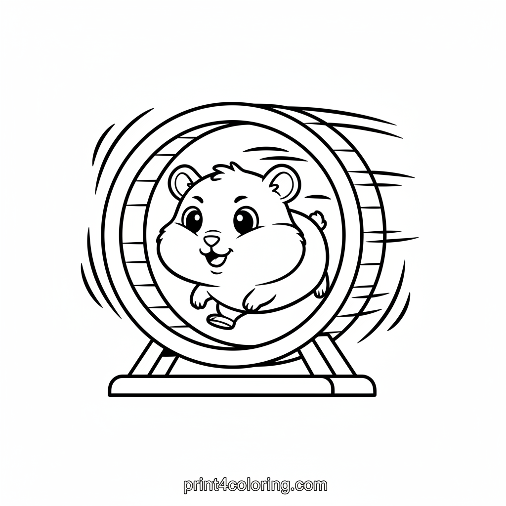 Get ready to color a super speedy hamster! This cheerful little friend is having the best time, running as fast as it can on its exercise wheel. Watch its tiny paws blur with speed, shown by fun wavy lines. Imagine the squeaks of joy as you bring this energetic scene to life!