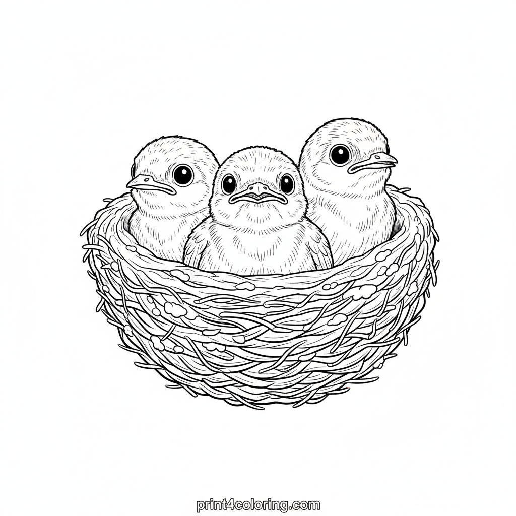 Baby Swallows in Their Cozy Nest Coloring Page