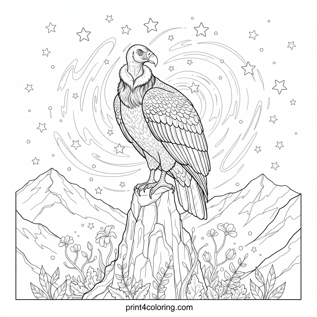 Celestial Condor's Starlit Sanctuary Coloring Page