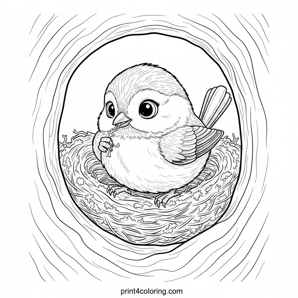 - 3✨ Nesting Materials - Color the soft moss in various greens and the tiny twigs in light browns and greys. Think about layering colors to show depth and softness.