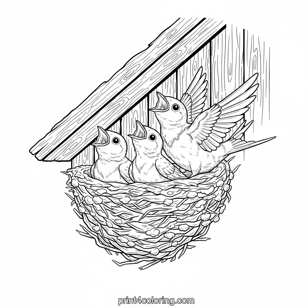 Chirping Baby Swallows in Their Cozy Nest Coloring Page