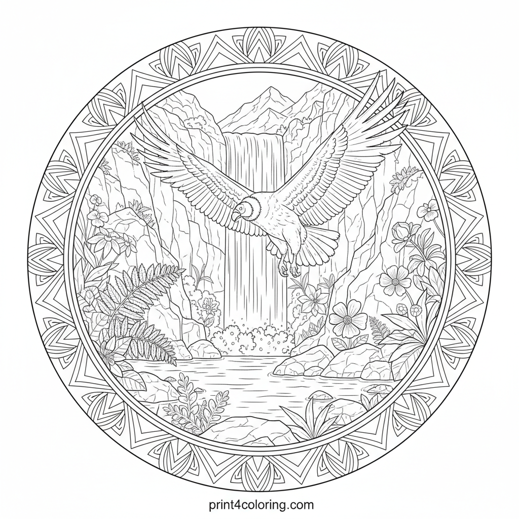 Condor's Secret Waterfall Sanctuary Coloring Page
