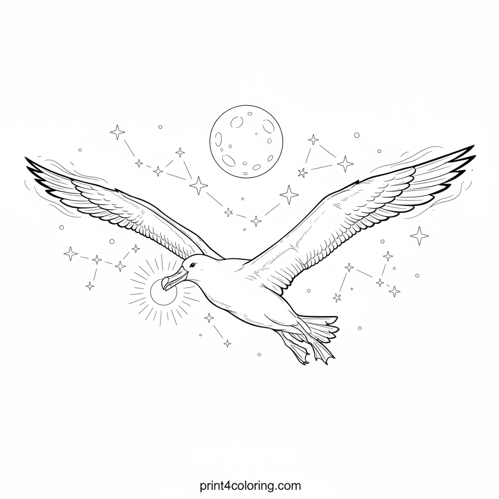#albatross#starlight#night-sky#fantasy-bird#celestial#glowing#stars#moon#coloring-page#printable