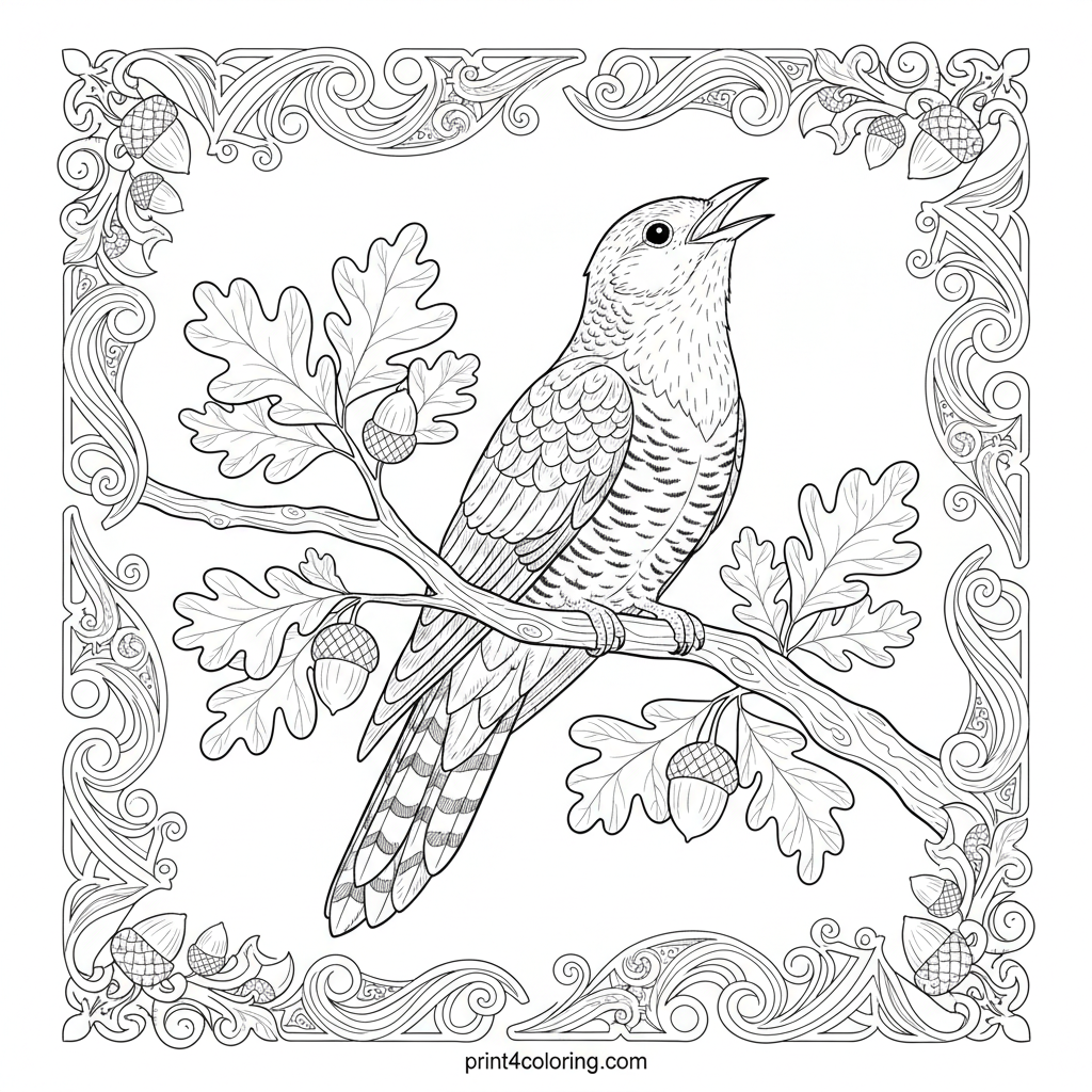 Cuckoo's Morning Song: Oak Branch Serenade Coloring Page