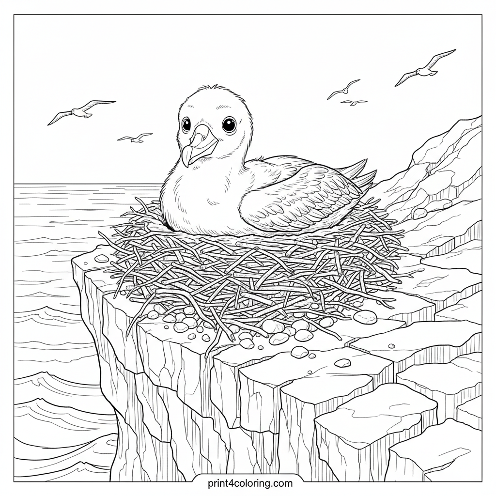 Curious Albatross Chick's Cliffside Debut Coloring Page