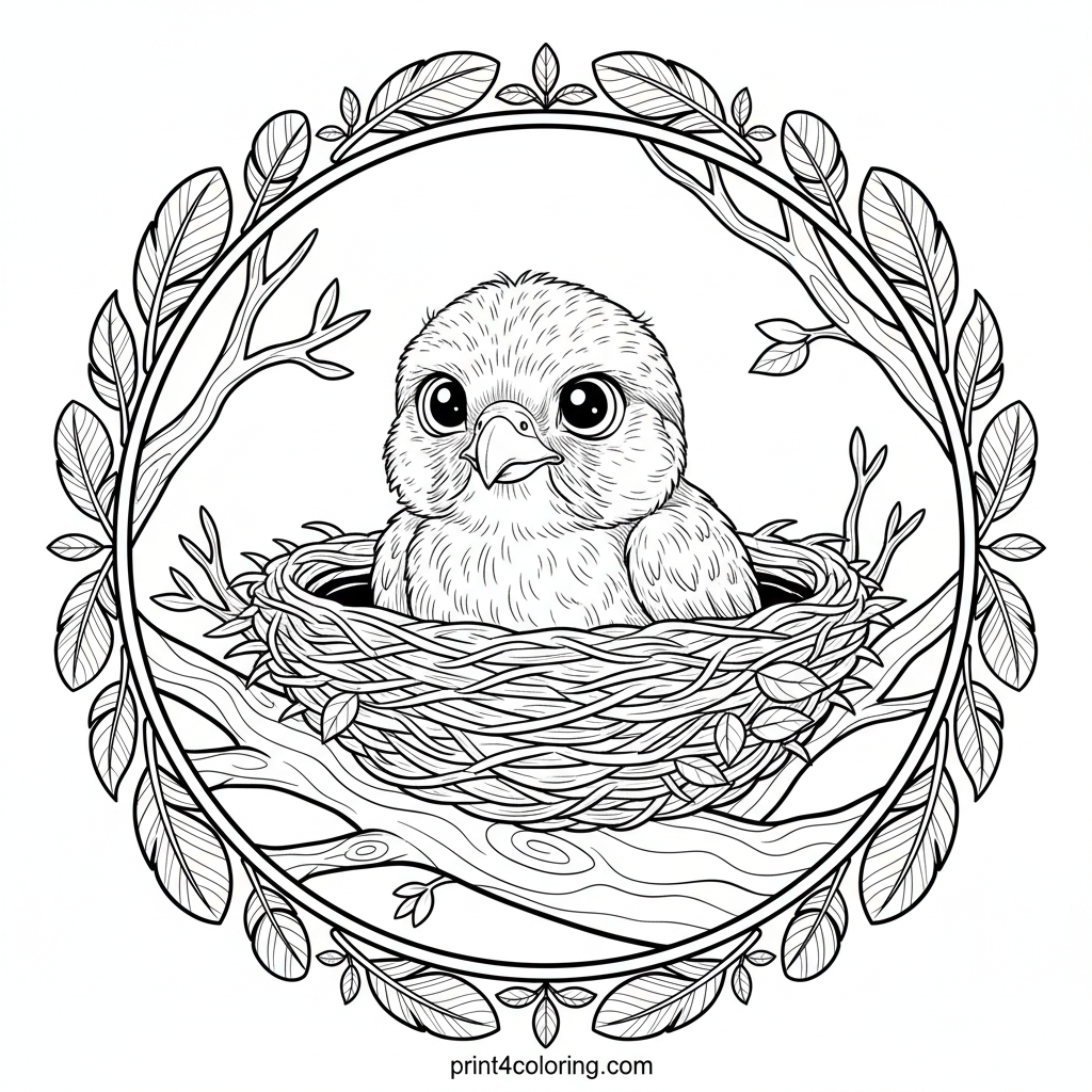 Curious Baby Falcon in Patterned Nest Coloring Page