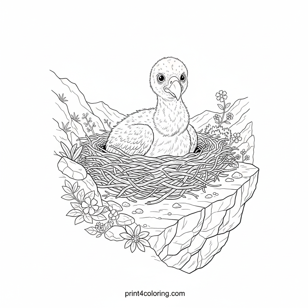 Curious Condor Chick's Cliffside Cradle Coloring Page