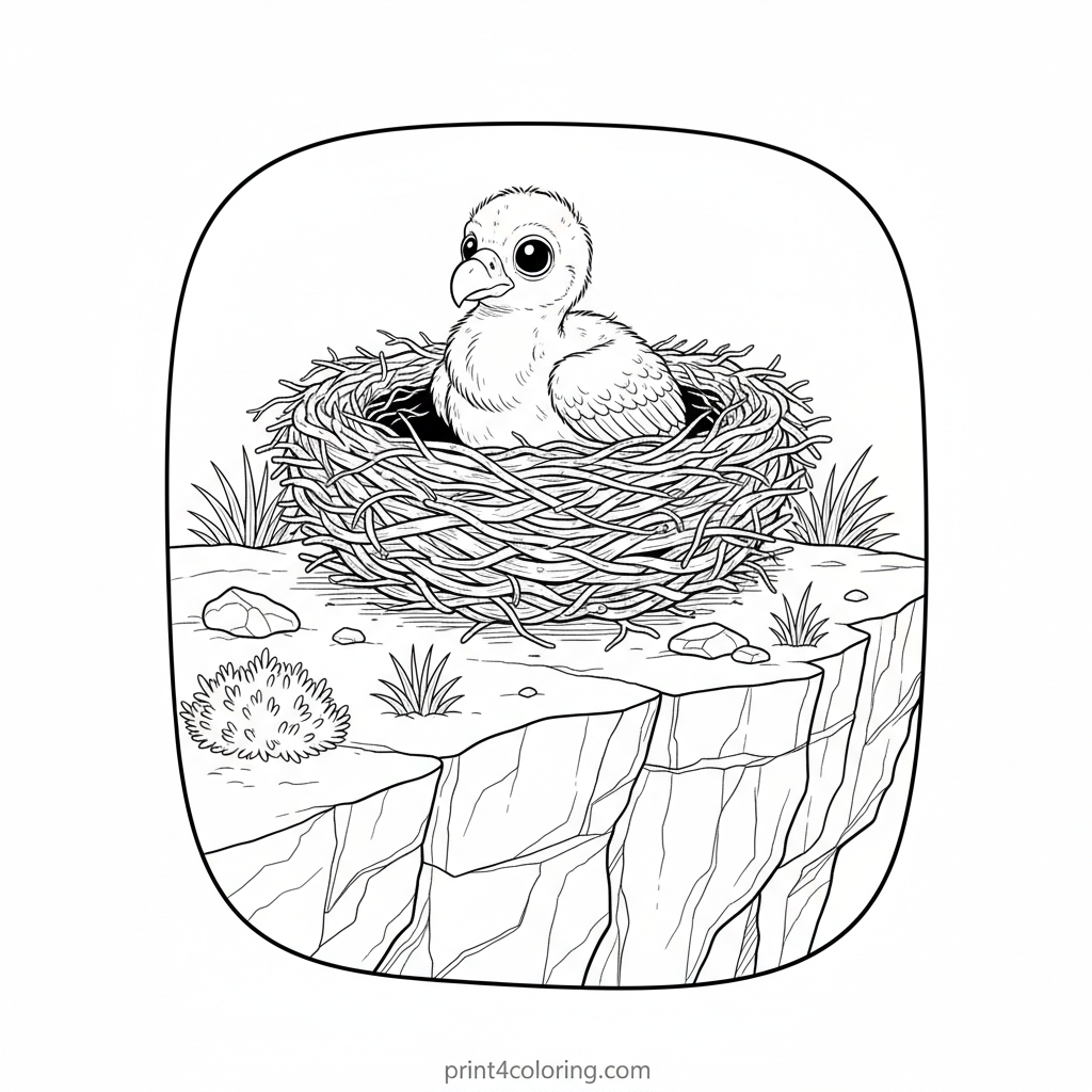 Curious Condor Chick's Cliffside Cradle Coloring Page