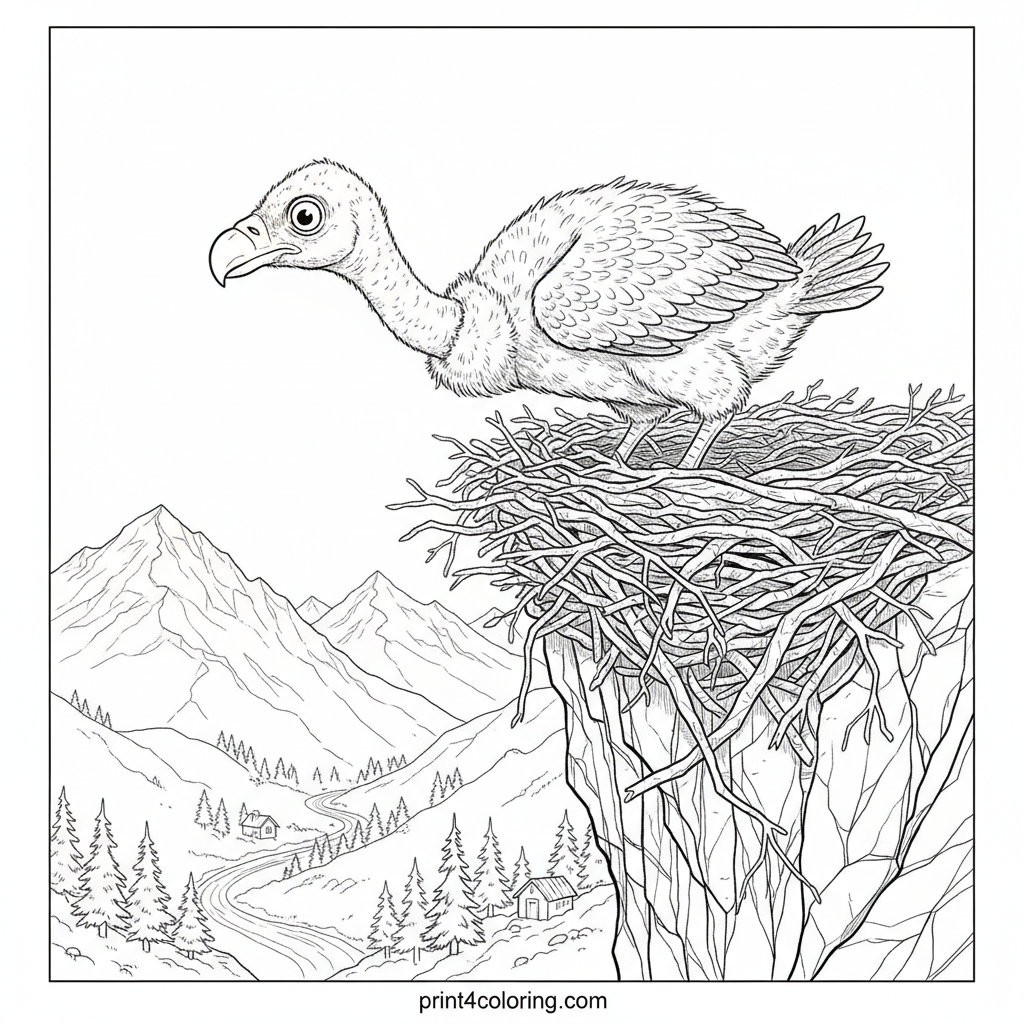 Curious Condor Chick's First Mountain Gaze Coloring Page