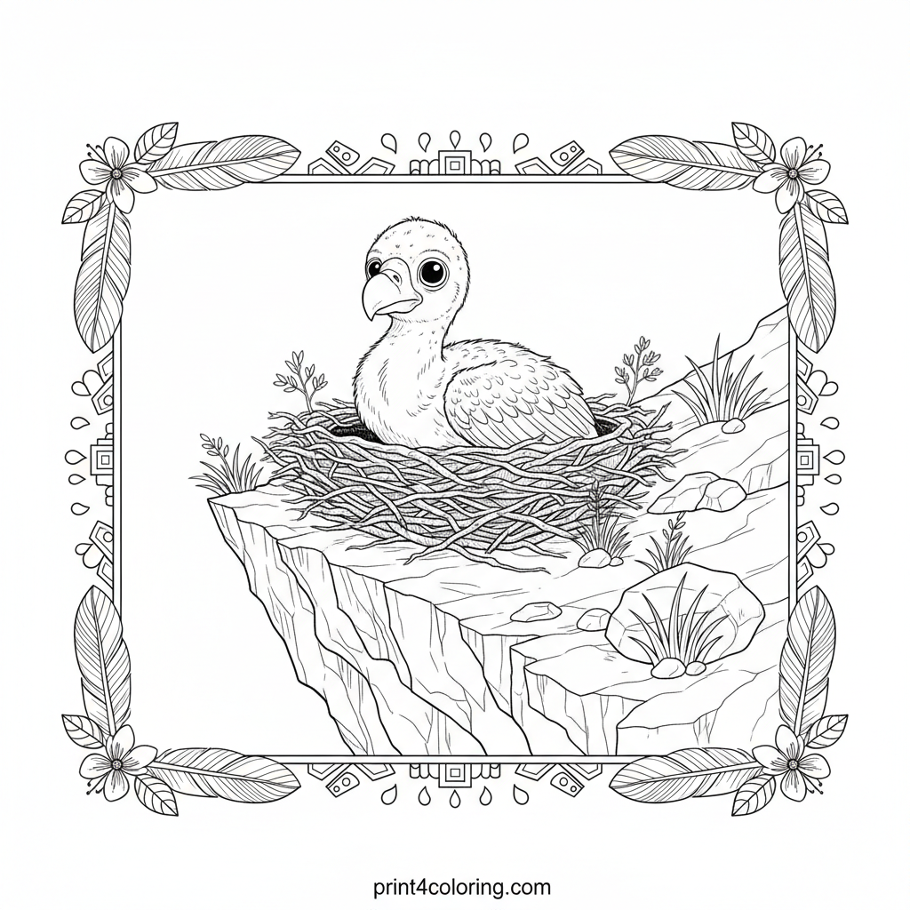 Curious Condor Chick's Mountain Nest Coloring Page