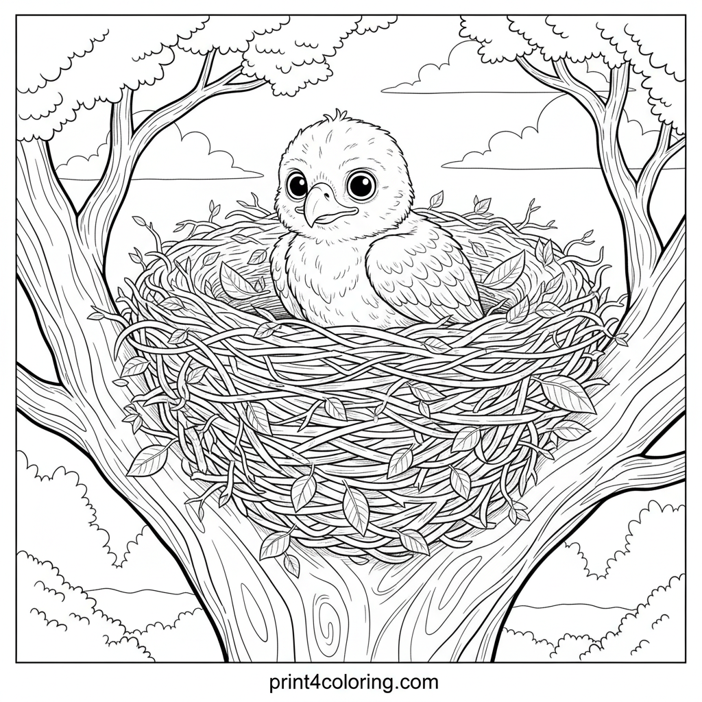 Curious Eagle Chick's Cozy Nest Coloring Page