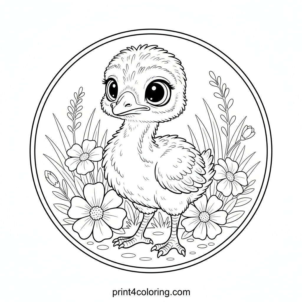 Curious Emu Chick's Wildflower Adventure Coloring Page
