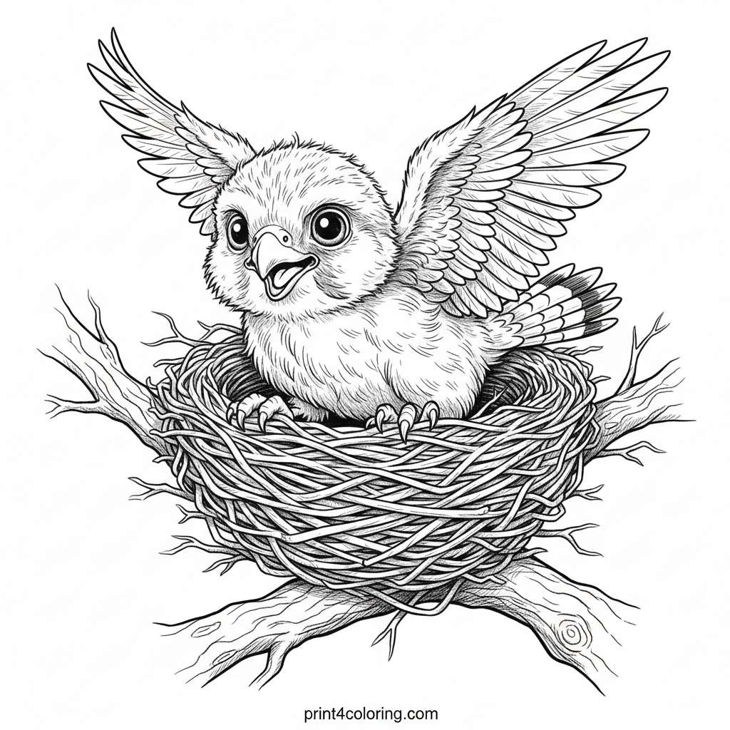 Curious Falcon Fledgling's Cozy Nest Coloring Page