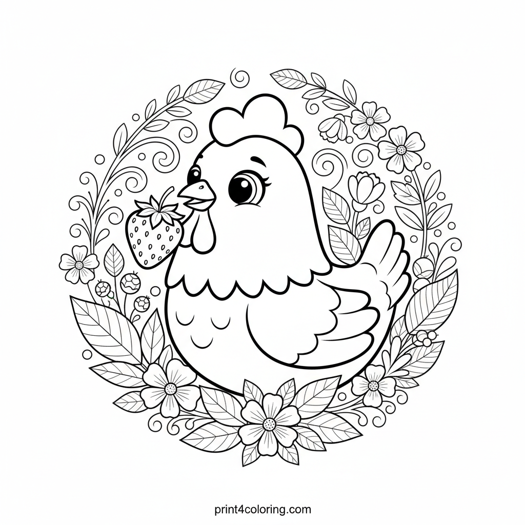 #hen#chicken#strawberry#garden#nature#farm-animal#detailed#coloring-page#printable
