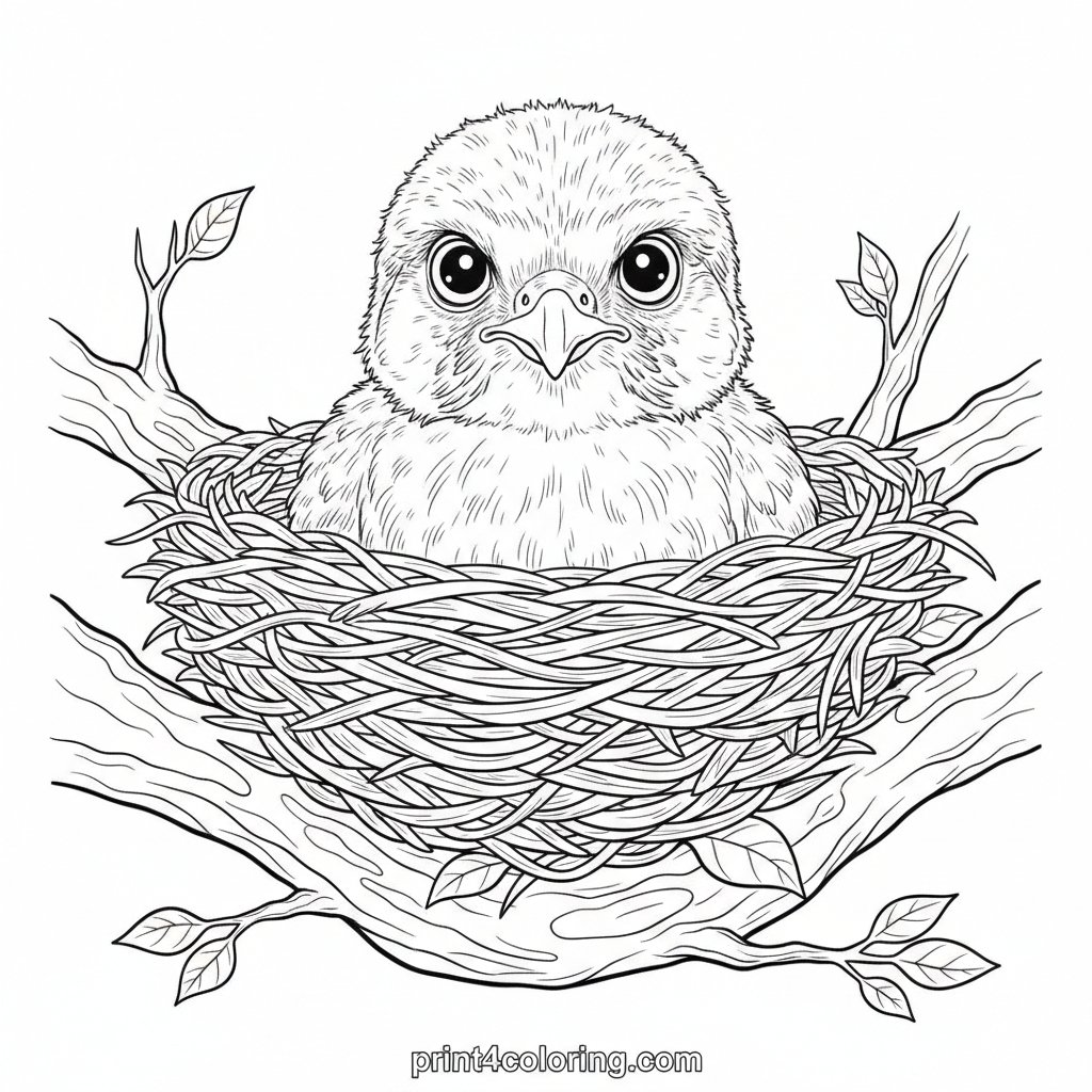 - 4🌈 Natural Surroundings - Add subtle background colors for the branches and leaves, using greens and darker browns to frame the nest without distracting from the baby falcon.