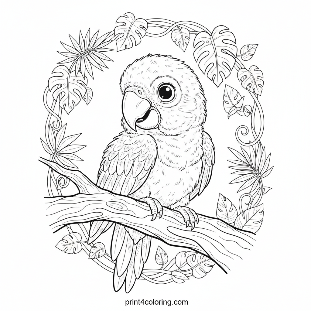 Curious Macaw Chick's Tropical Perch Coloring Page