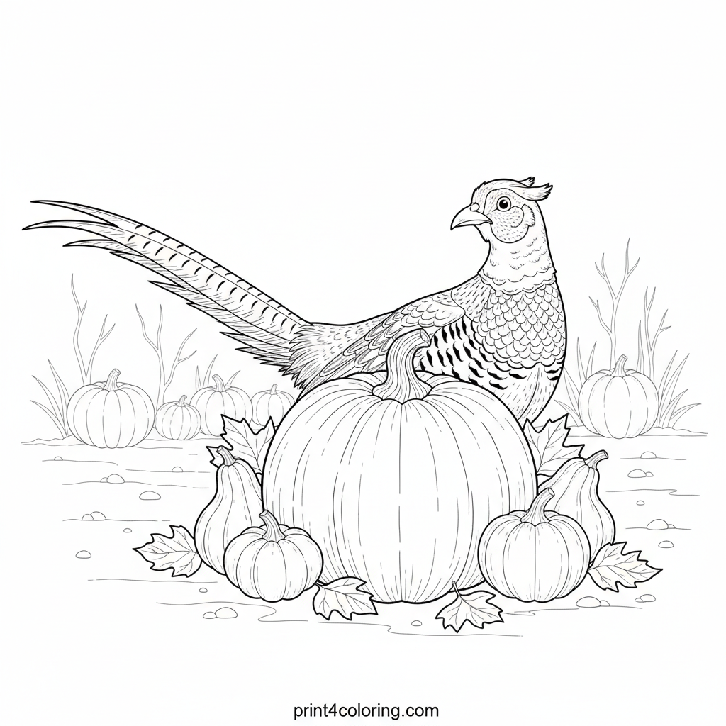 Curious Pheasant's Pumpkin Patch Discovery Coloring Page