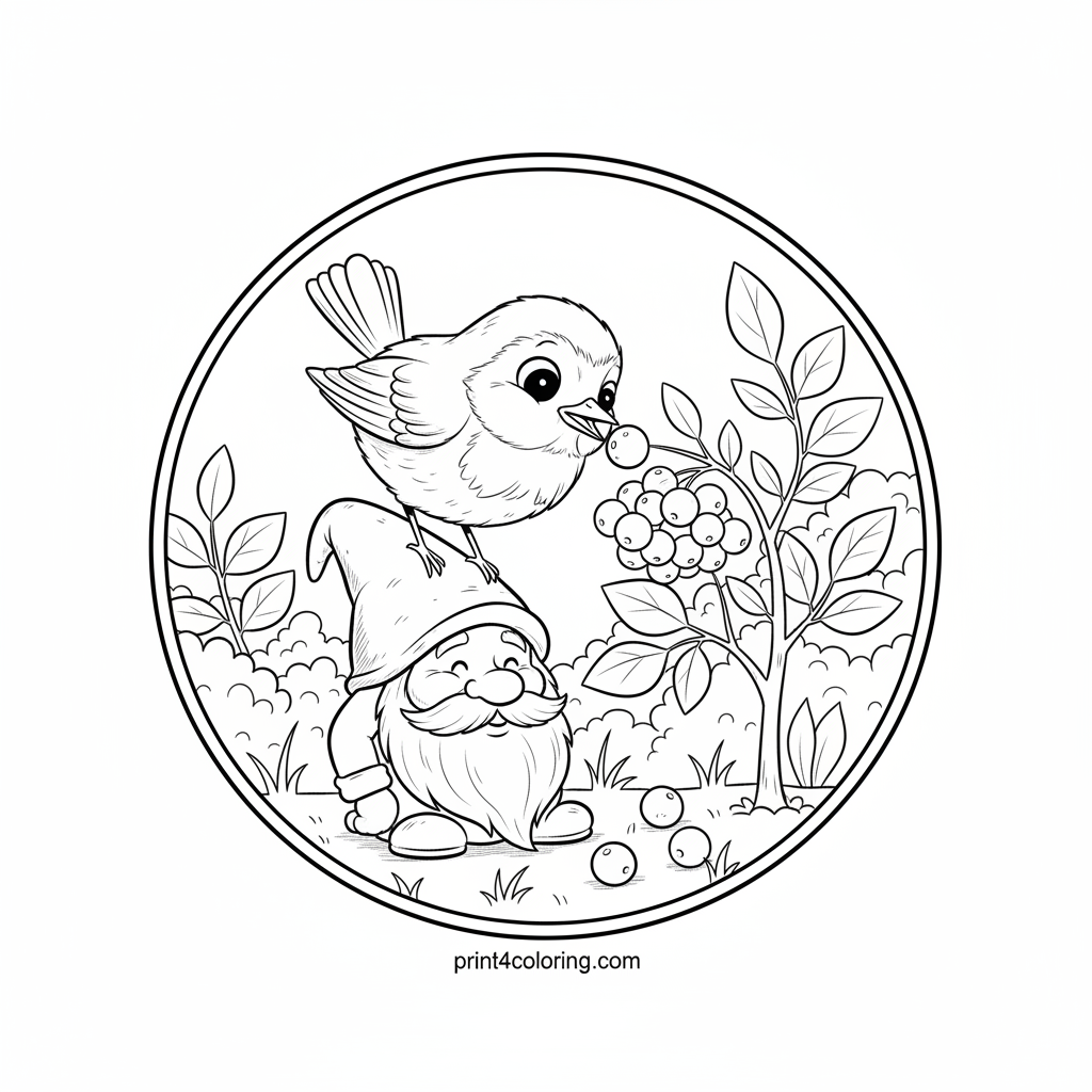 #robin#bird#berries#garden#gnome#cute#nature#coloring-page#printable