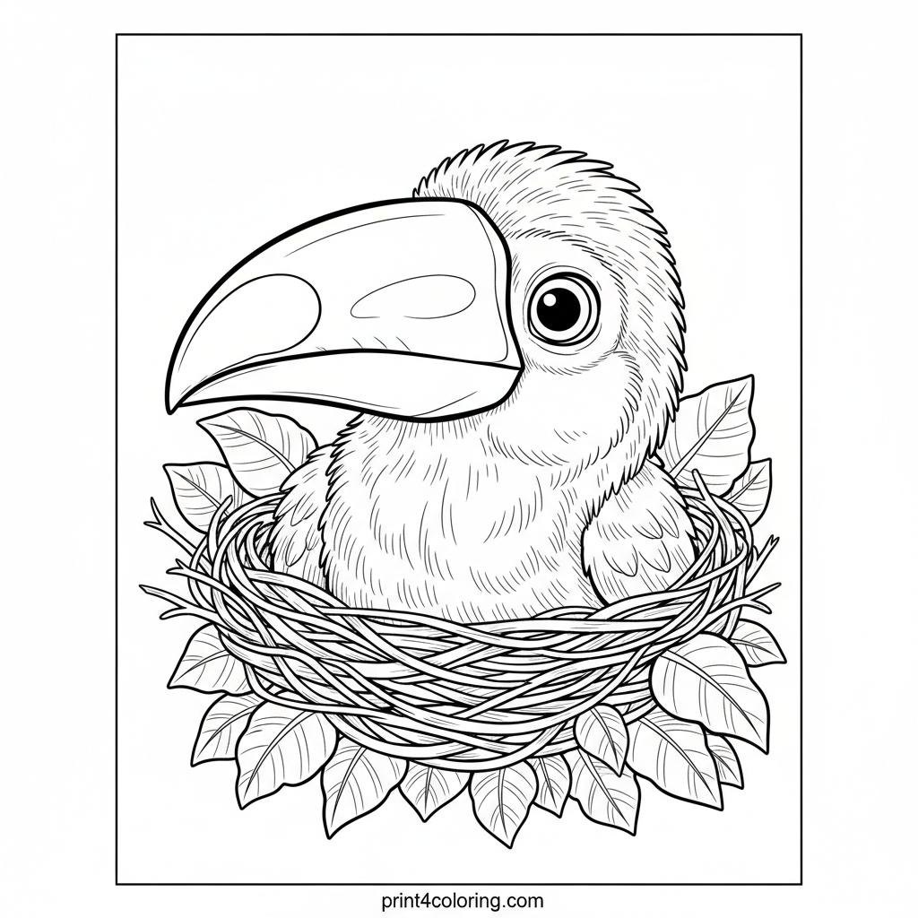 Curious Toucan Chick's Cozy Nest Coloring Page